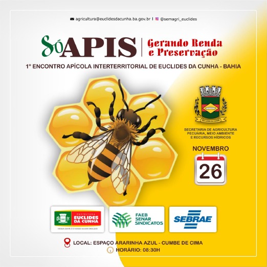 09:00 às 09:30h: Apresentação do Projeto de Estruturação da Cadeia Produtiva do Mel – Euclides da Cunha