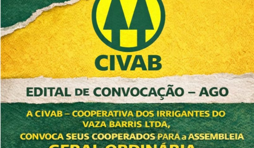 A CIVAB – Cooperativa dos Irrigantes do Vaza Barris Ltda. publicou edital convocando seus cooperados para a Assembleia Geral Ordinária (AGO), marcada para o dia…